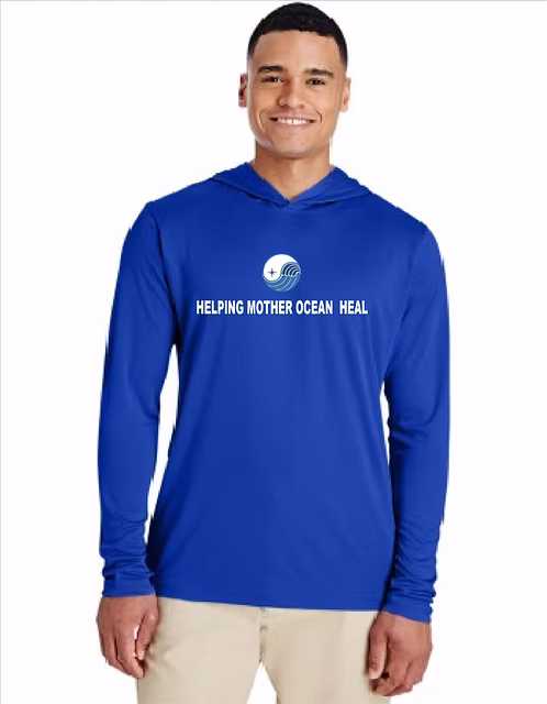 Helping Mother Ocean Heal & MOF Medallion Hooded Rash Gaurd -Navy Blue....